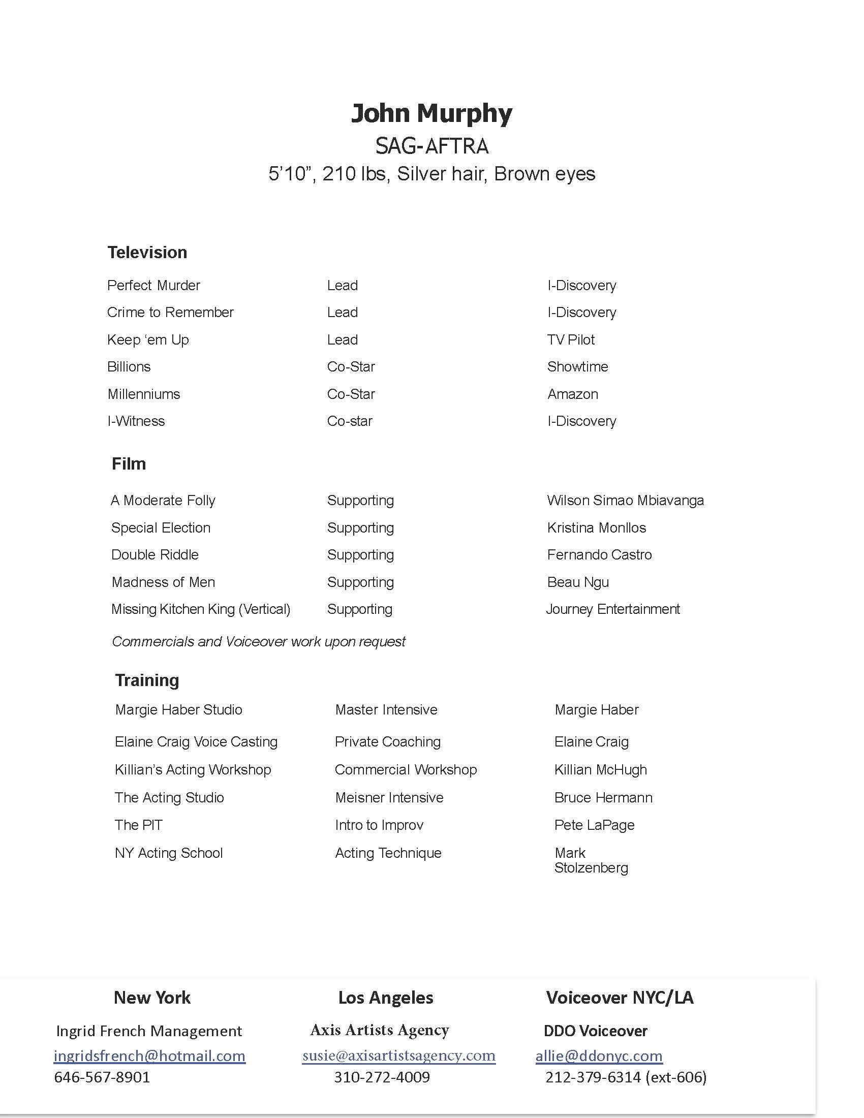 I've appeared in several indie films, national TV commercials and co-star roles in network television. My range: bad-ass bartender, corporate executive, detective, judge and family man. Voiceover work includes dramatic podcasts and long-running national TV commercials. I’m based in NYC and LA. But my travel apps are on high alert. SAG Fi-Core.